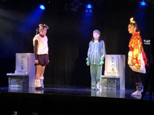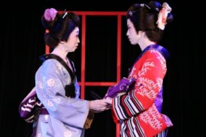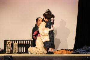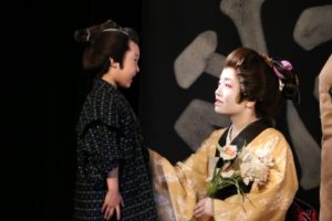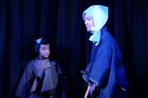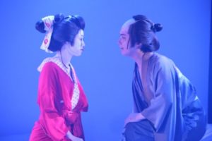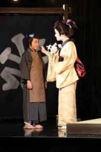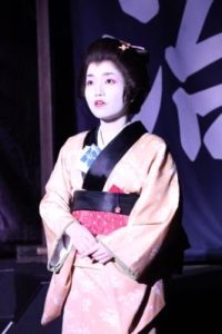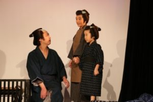 今回はメーク(白塗り)・着物・かつら等、本格的な時代劇。